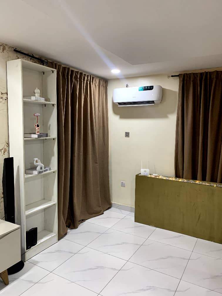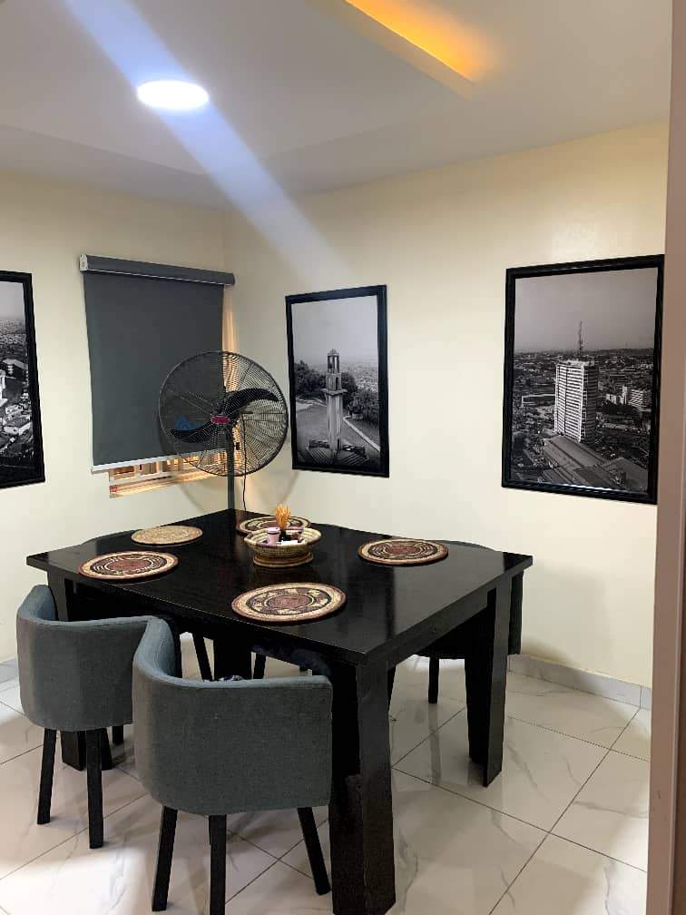This 3-bedroom self-contained duplex offers the perfect blend of comfort, convenience, and entertainment in a serene and secure environment. Each room is ensuite, with an additional guest toilet for visitors. The apartment comes fully equipped with smart TVs and air conditioning in every room, as well as standing fans throughout for extra comfort. Stay entertained with a music player, game corner, Netflix, DStv, and free Wi-Fi, or enjoy cooking with a fully stocked kitchen featuring a microwave, air fryer, gas burner, bread toaster, blender, and more. Additional conveniences include wardrobes, a washing machine, 24-hour power backup, housekeeping services, and ample parking space. Ideal for families, professionals, or groups looking for a luxurious yet homely stay.
