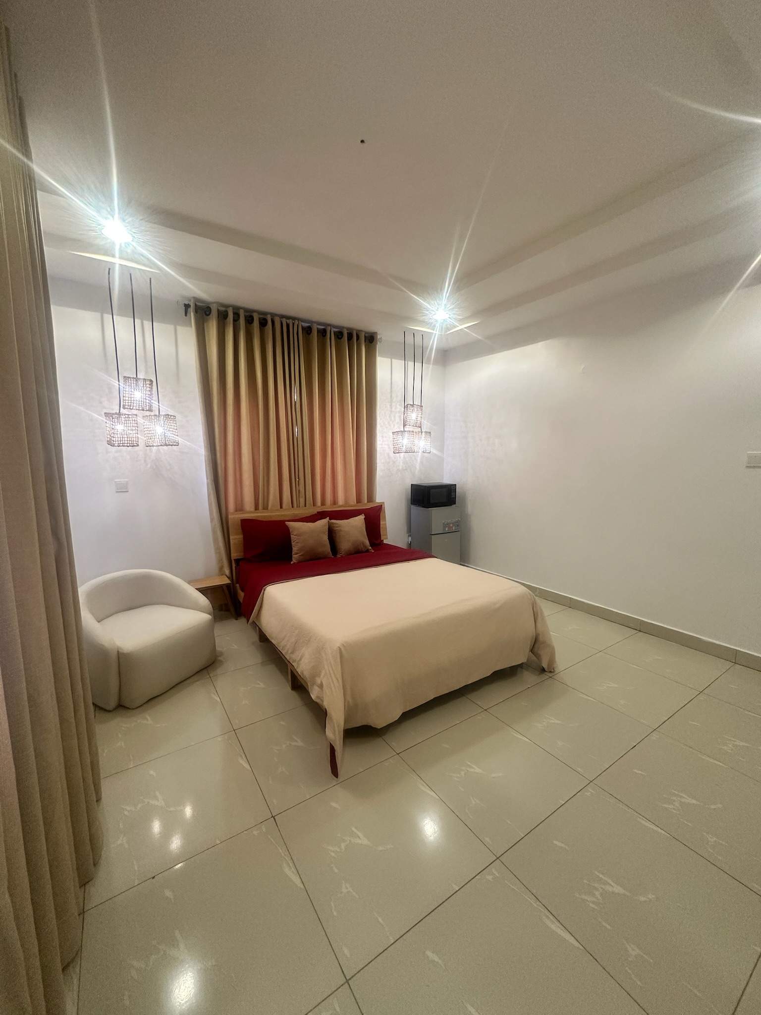 This Studio apartment features a well-spaced, fully furnished room with air conditioning, designed to offer comfort and ease for both short and extended stays. It allowa guests enjoy the convenience of home-style living, ensuring peace of mind throughout your stay.