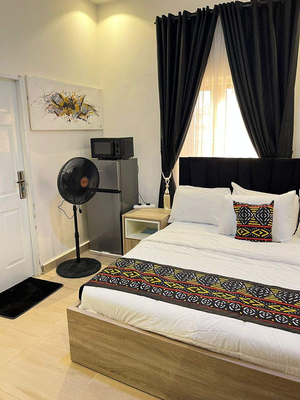 This apartment features well-spaced, fully furnished rooms with air conditioning, designed to offer comfort and ease for both short and extended stays. The fitted kitchen allows guests enjoy the convenience of home-style living, while ample parking space and reliable security ensure peace of mind throughout your stay.
