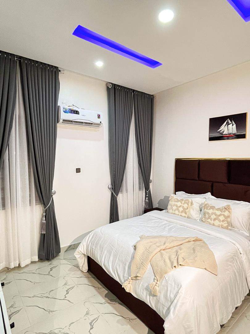 Stay in a secure, fully furnished, stylish 3-bedroom duplex ideal for professionals, friends, or groups. Located in a top Lekki neighbourhood, you're just 20–30 minutes from beaches, shopping, & major attractions.