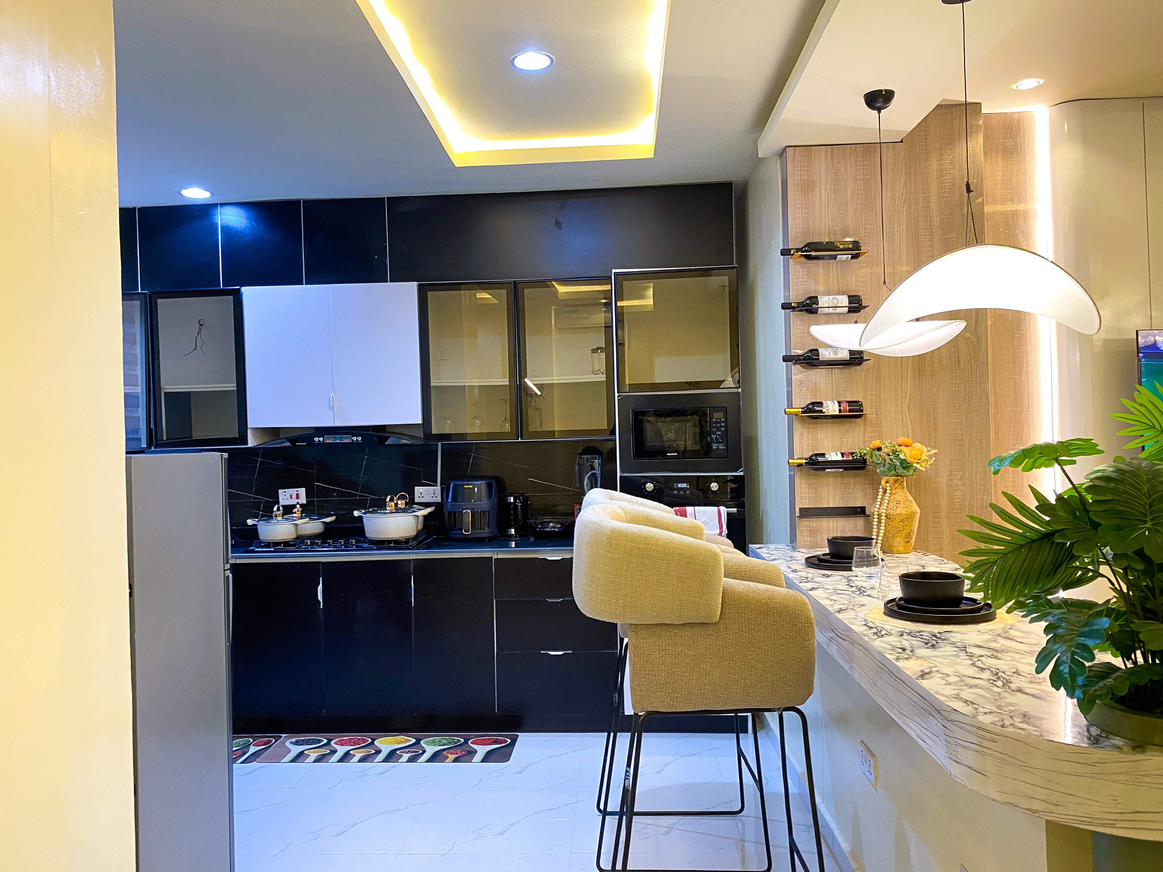 Cook with ease in the fully equipped modern kitchen, complete with high-quality appliances, cookware, and dining essentials. Whether you’re preparing a quick breakfast or a full home-cooked dinner, everything you need is right at your fingertips. The elegant dining area provides the perfect space to enjoy meals together, host casual drinks, or even set up for remote work.