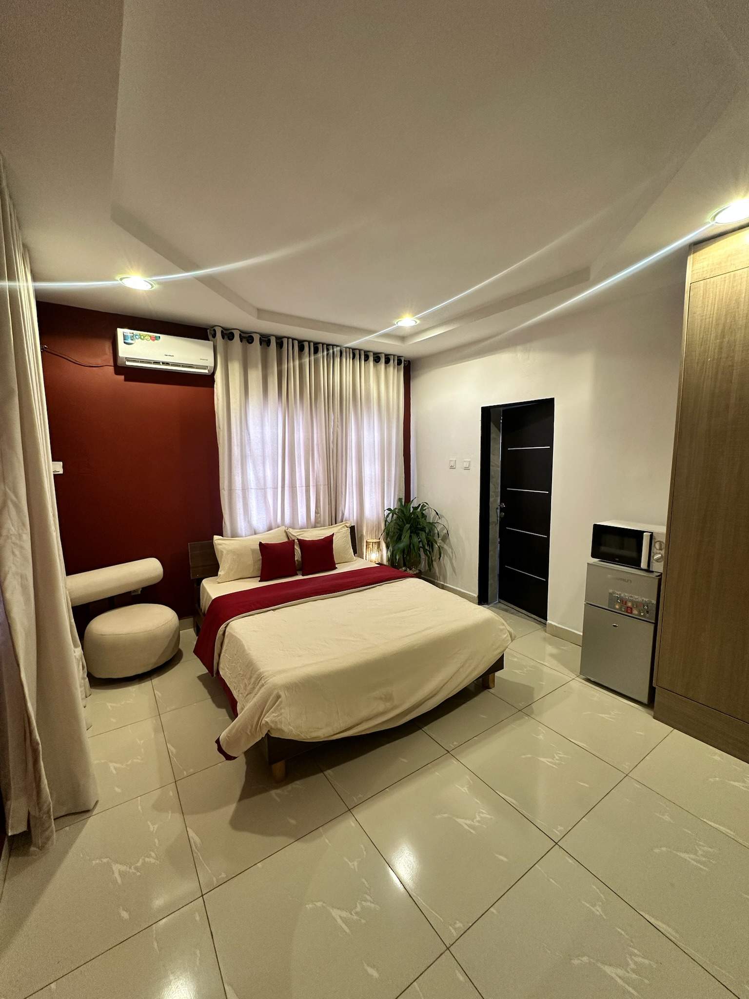 This apartment features well-spaced, fully furnished rooms with air conditioning, designed to offer comfort and ease for both short and extended stays. The fitted kitchen allows guests enjoy the convenience of home-style living, while ample parking space and reliable security ensure peace of mind throughout your stay.