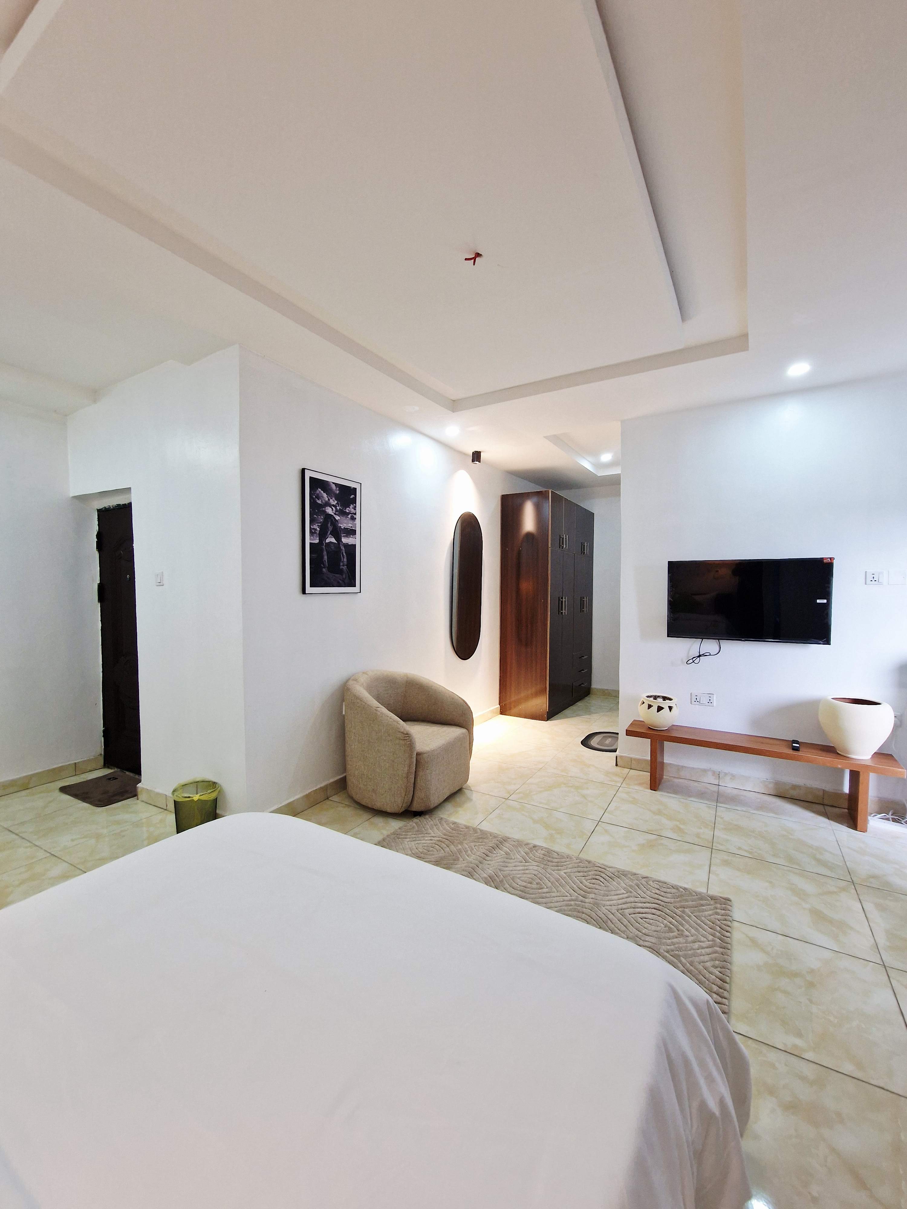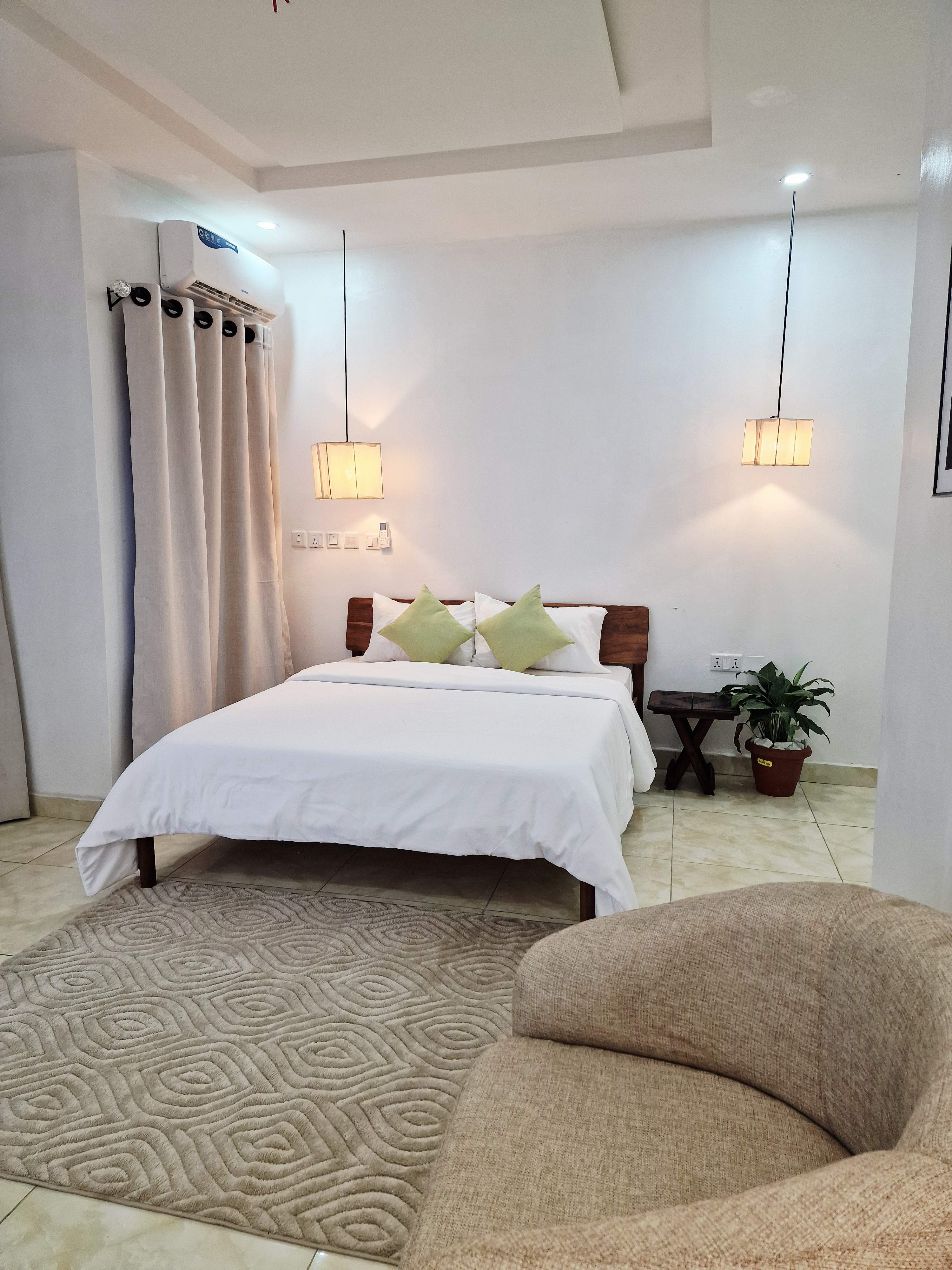 This apartment features well-spaced, fully furnished rooms with air conditioning, designed to offer comfort and ease for both short and extended stays. The fitted kitchen allows guests enjoy the convenience of home-style living, while ample parking space and reliable security ensure peace of mind throughout your stay.