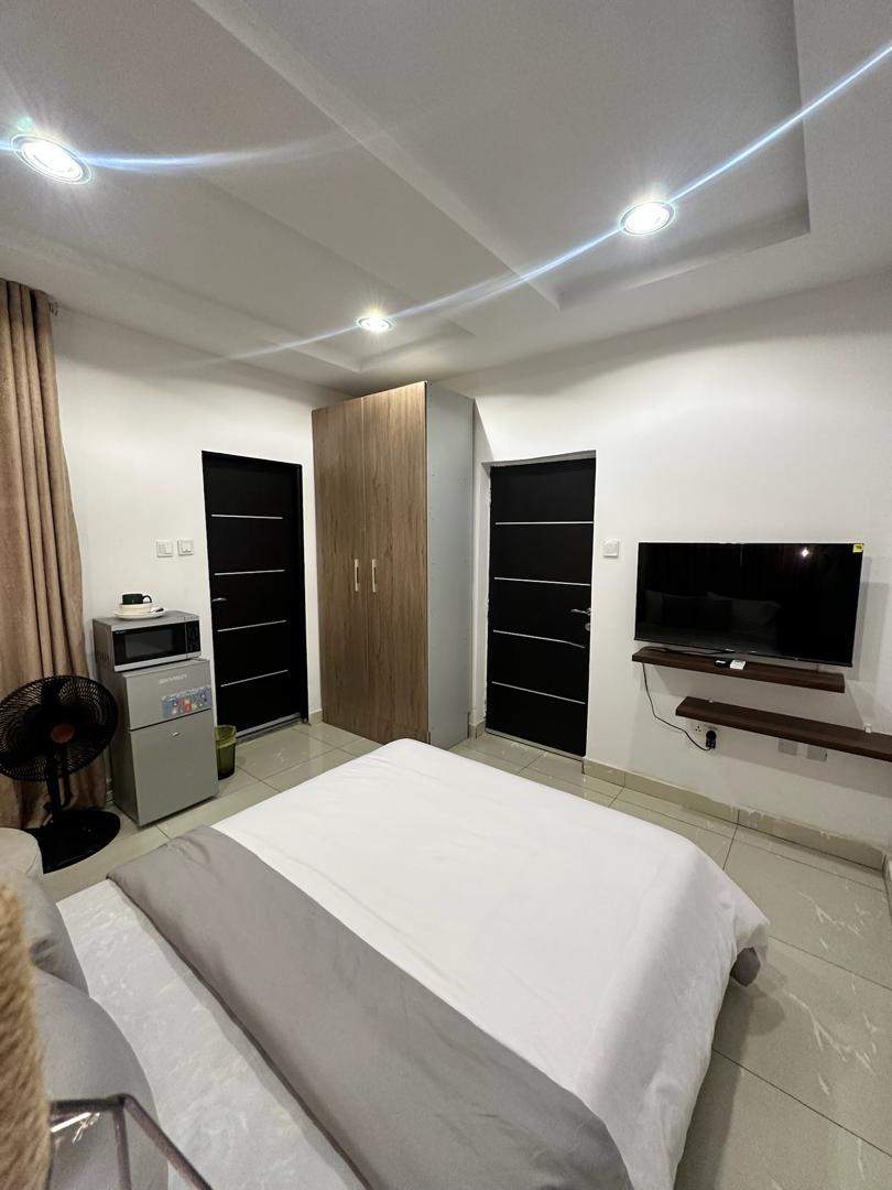 This apartment features well-spaced, fully furnished rooms with air conditioning, designed to offer comfort and ease for both short and extended stays. The fitted kitchen allows guests enjoy the convenience of home-style living, while ample parking space and reliable security ensure peace of mind throughout your stay.