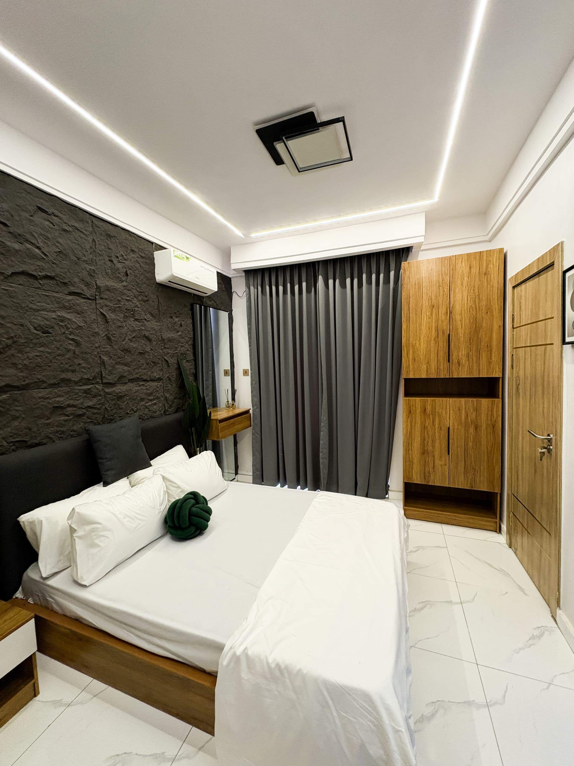 This thoughtfully designed Studio Apartment in Pluto, Surulere offers a perfect blend of comfort, reliability, and relaxation. With a solar inverter ensuring uninterrupted power, fully air-conditioned rooms, and modern conveniences throughout, guests enjoy a seamless stay from check-in to check-out.