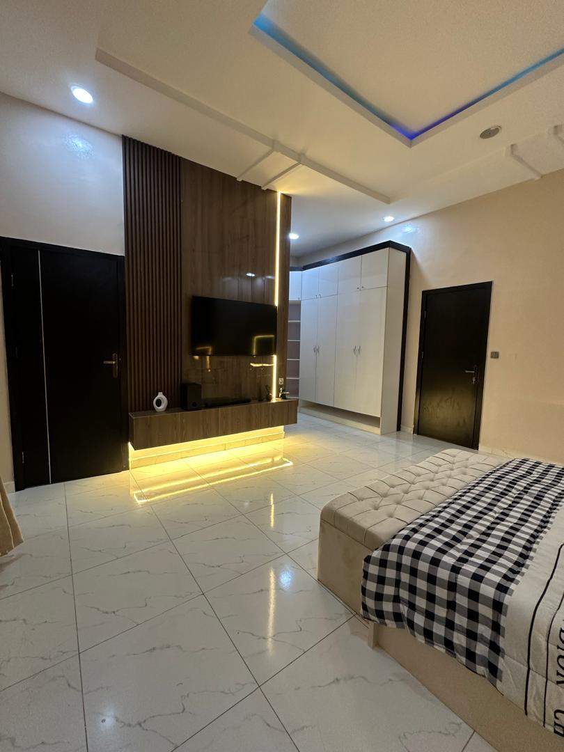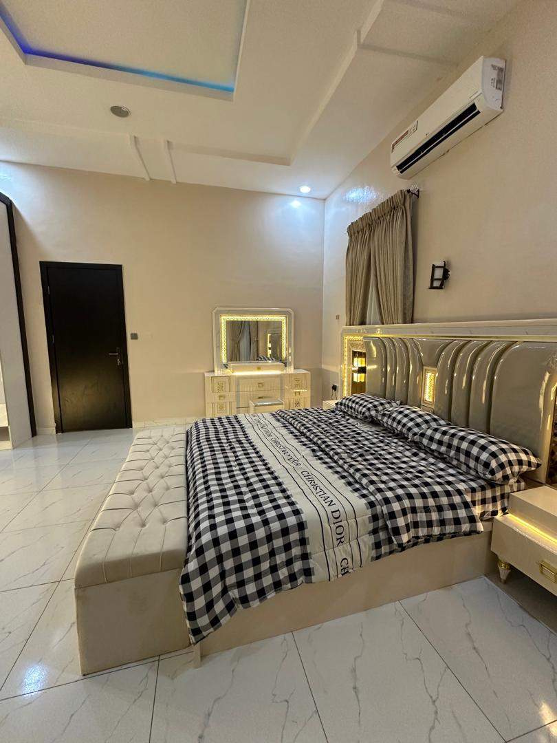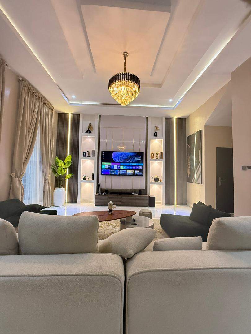 This Luxury 4-bedroom Shortlet Apartment comes with a Homely Touch in Ikota Lekki. It offers a comfy stay. Guests enjoy free WiFi, air-conditioning, and a balcony for relaxation. The apartment features a fully equipped kitchen, washing machine, and TV. Free on-site private parking is available, ensuring convenience for all visitors.