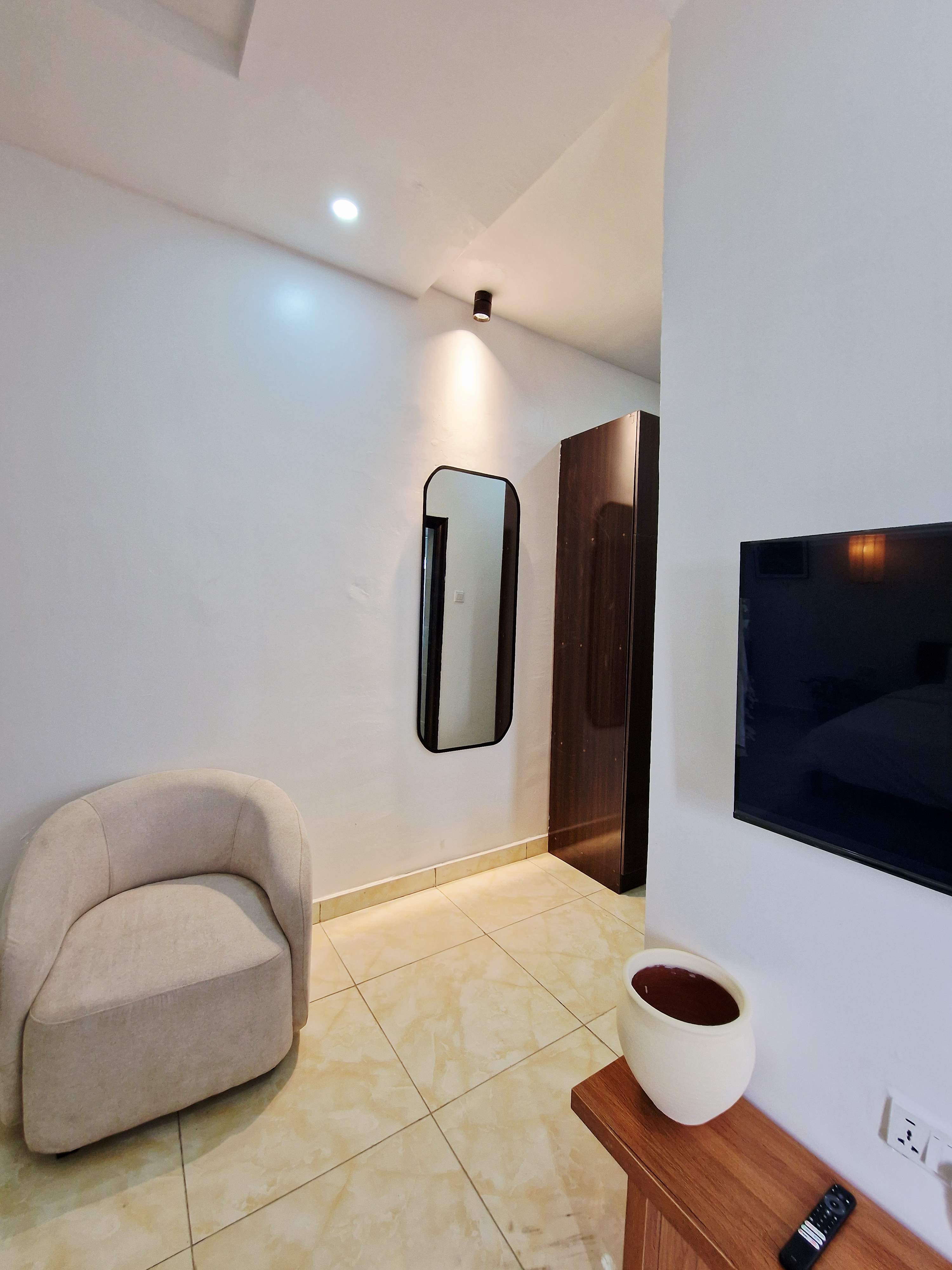 This Studio apartment features a well-spaced, fully furnished room with air conditioning, designed to offer comfort and ease for both short and extended stays. It allows guests enjoy the convenience of home-style living, ensuring peace of mind throughout your stay.