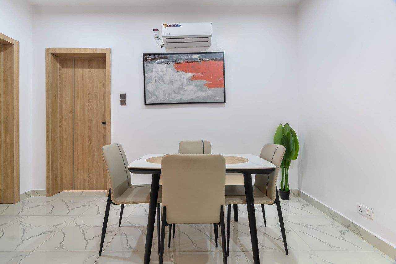 Stay entertained with Netflix, DSTV, Prime Video, Showmax, and YouTube, or request a PS5 for gaming fun. The apartment also comes with inbuilt Bluetooth speakers, a smart door lock, a fully fitted kitchen, and fast unlimited Wi-Fi.
