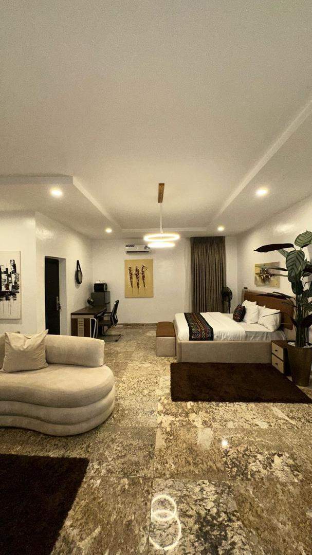 This thoughtfully designed one room shortlet apartment offers comfort, privacy, and convenience for solo travelers or couples. Guests enjoy uninterrupted power supply, fast Wi-Fi, and a fully equipped kitchen for a true home-away-from-home experience. With daily or on-request housekeeping, en-suite bathroom, modern appliances, and a calm environment the space is ideal for both short and extended stays—secure, functional, and effortlessly comfortable.
