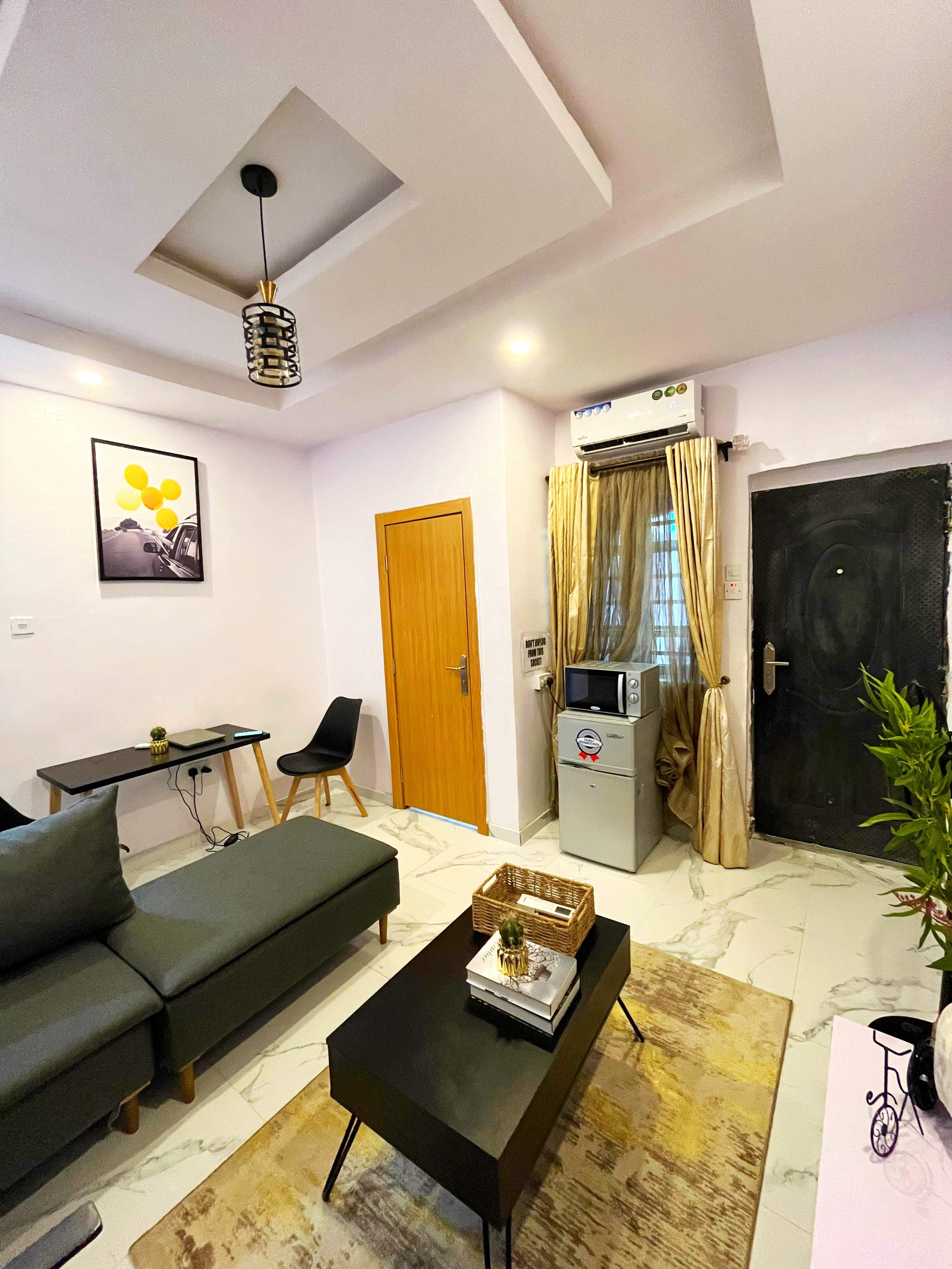 This thoughtfully designed apartment in Pluto, Ilupeju offers a perfect blend of comfort, reliability, and relaxation. With a solar inverter ensuring uninterrupted power, fully air-conditioned rooms, and modern conveniences throughout, guests enjoy a seamless stay from check-in to check-out.